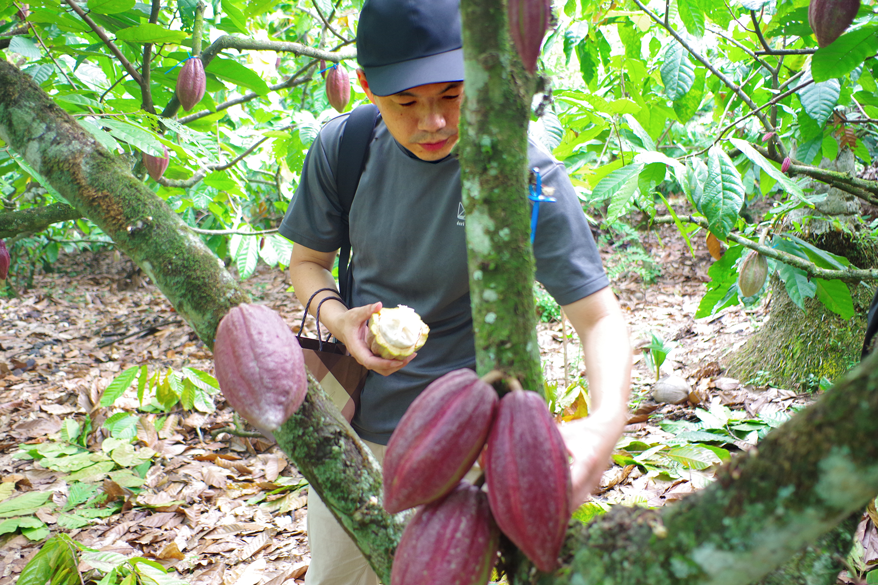 「昨日、試験中のカカオ豆をちょっとだけ収穫してみたけど、今回もちゃんと効いてる!」
