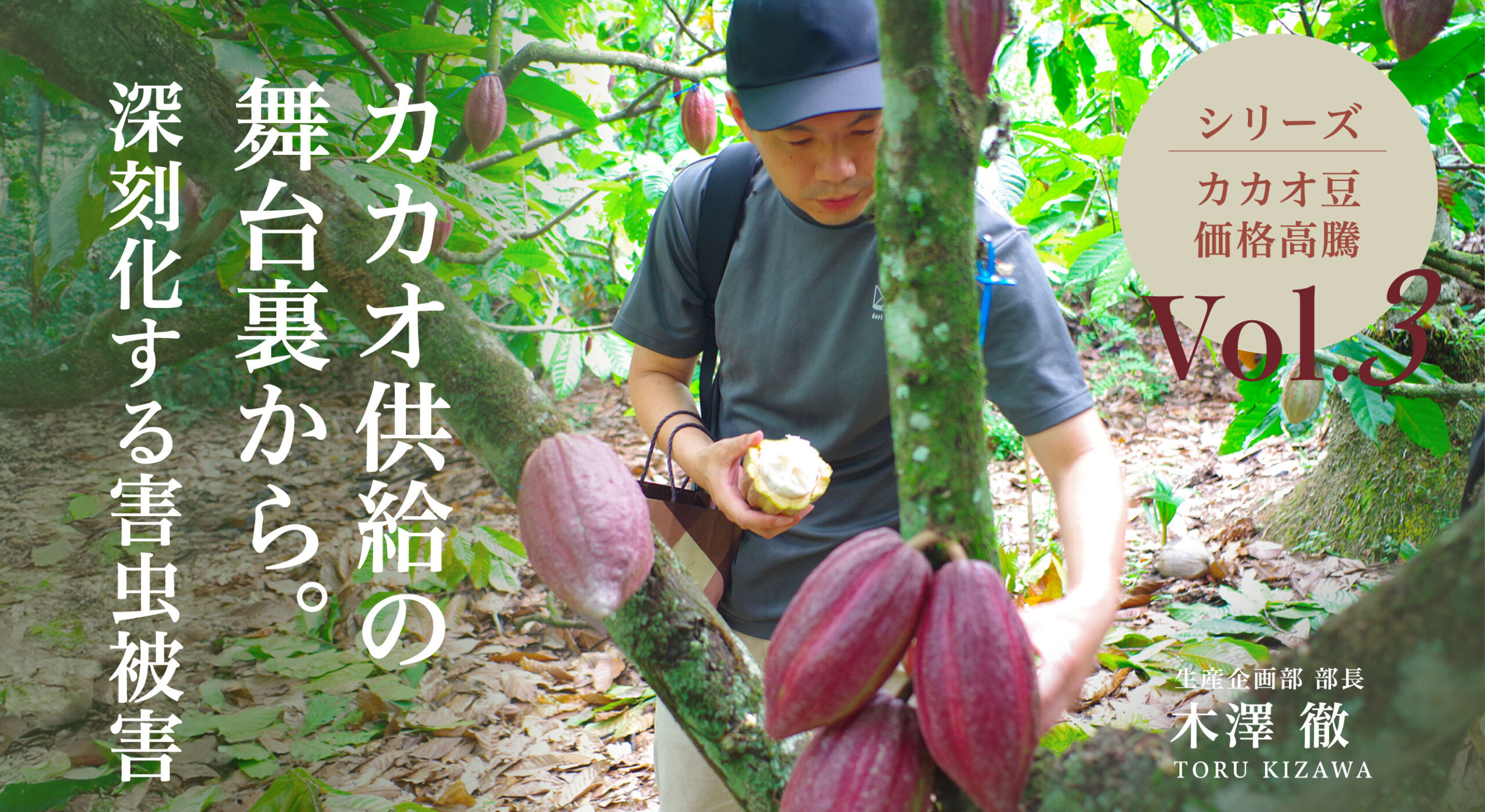数年前、害虫被害がはじめて深刻化したとき、大切なお客様からオーダー頂いたカカオ豆を果たして本当に調達できるかとても難しい局面に陥りました。