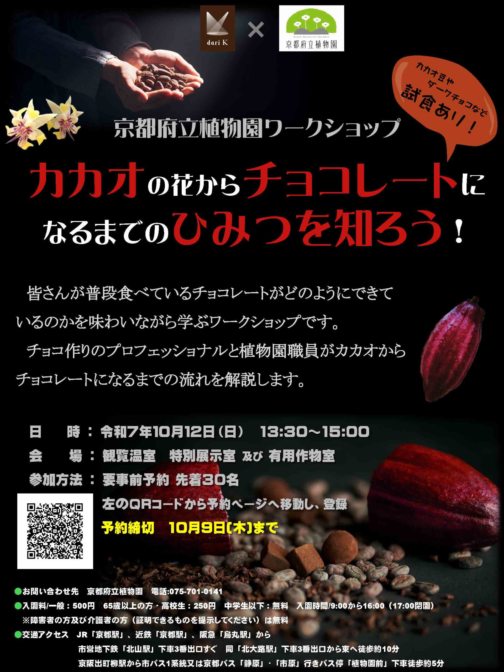 【10月12日イベント】カカオの花からチョコレートになるまでの秘密を知ろう! 京都府立植物園