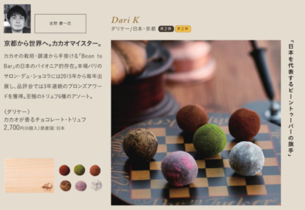 新着情報 イベント情報 【2月5日(月)より京都伊勢丹「サロン・デュ・ショコラ」に出店】 2018年2月5日 本日2月5日(月)よりバレンタイン当日まで、JR京都伊勢丹「サロン・デュ・ショコラ」@10F催事場にてDari Kがブース出店致します。 営業時間は10:00~20:00です。 今年の新作トリュフの他、京都伊勢丹の限定「京の抹茶&ほうじ茶生チョコ」も販売しております。 京都駅直結のため、ご出張で京都へいらした方も是非お立ち寄りくださいませ!