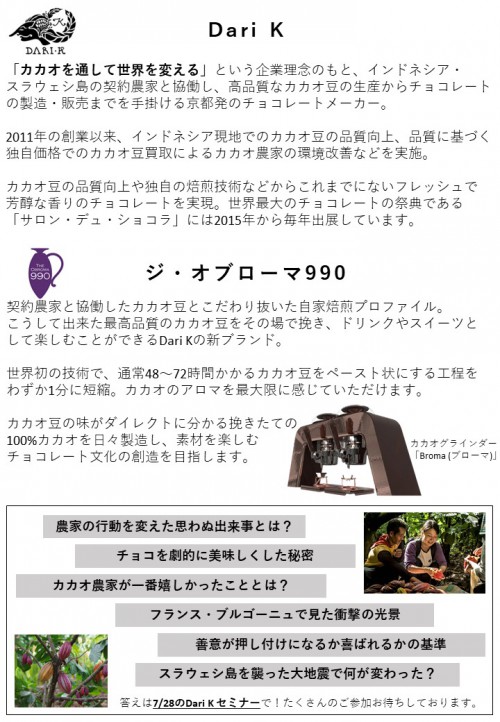 【イベント情報】7月28日(日)Dari K代表吉野によるセミナー開催決定