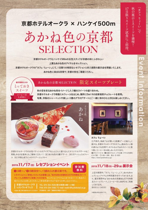 また、11月18日(月)〜29日(金)までは、同じく「カフェ りょーい」にてあかね色セレクションアイテムの展示が行われ、