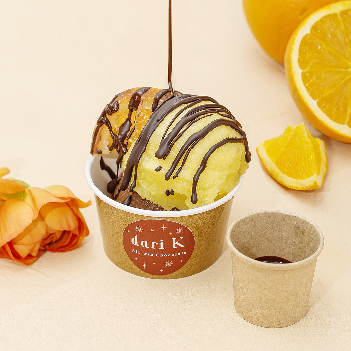 1月15日より、dari K 丸の内オアゾ店に「パリパリカカオとオレンジのジェラート」が新登場!カカオとオレンジ、2種のジェラートに、まろやかな甘さが特徴の愛媛県産清見オレンジをトッピング。最後はお客様によってカカオ100%のチョコレートペーストをかけて仕上げていただきます。